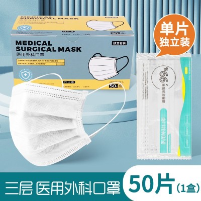 医用白色外科口罩50只独立包装一次性三层防护医用级透气口罩代发