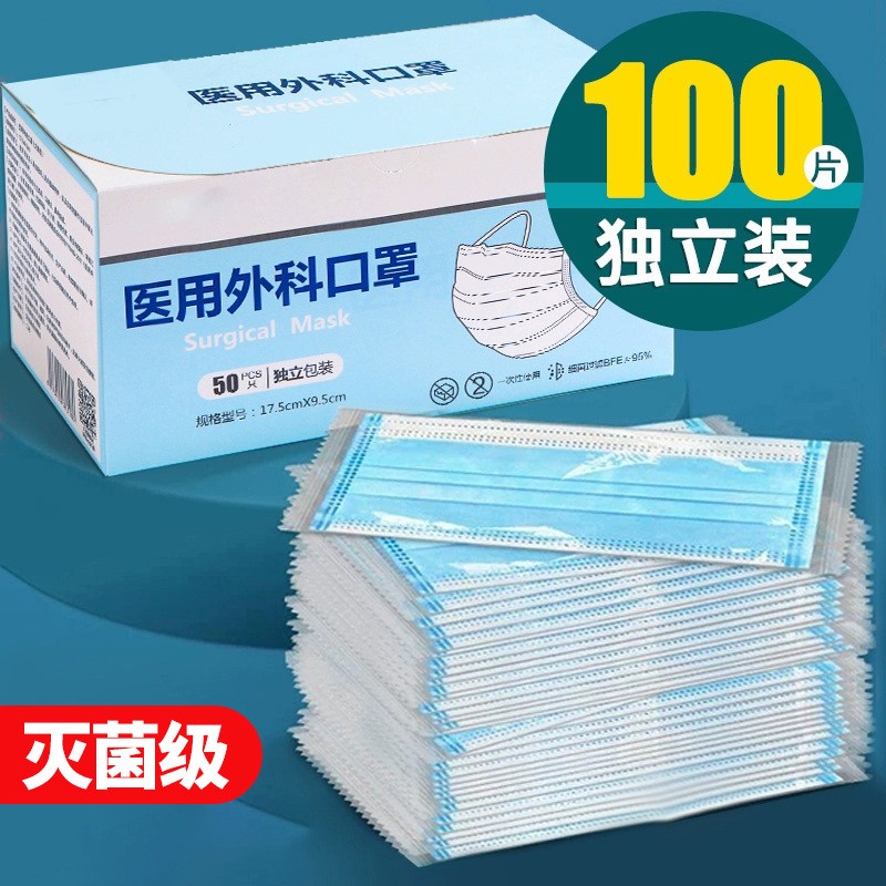 医用外科口罩灭菌级一次性蓝色成人三层防护单独包装工厂 现货批发