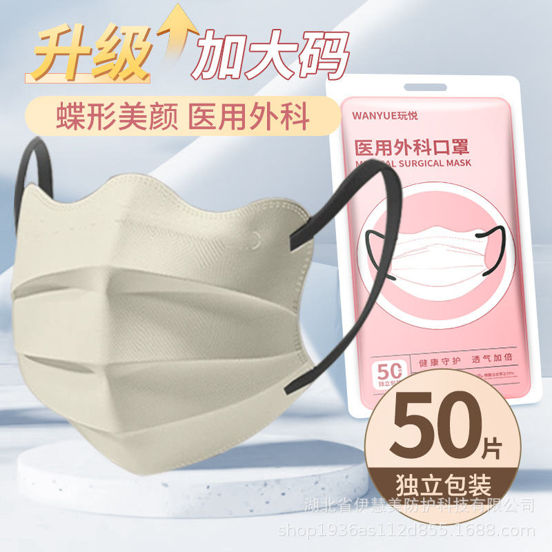 一次性口罩医疗加大版蝶形女高颜值夏季防晒透气医用外科独立包装