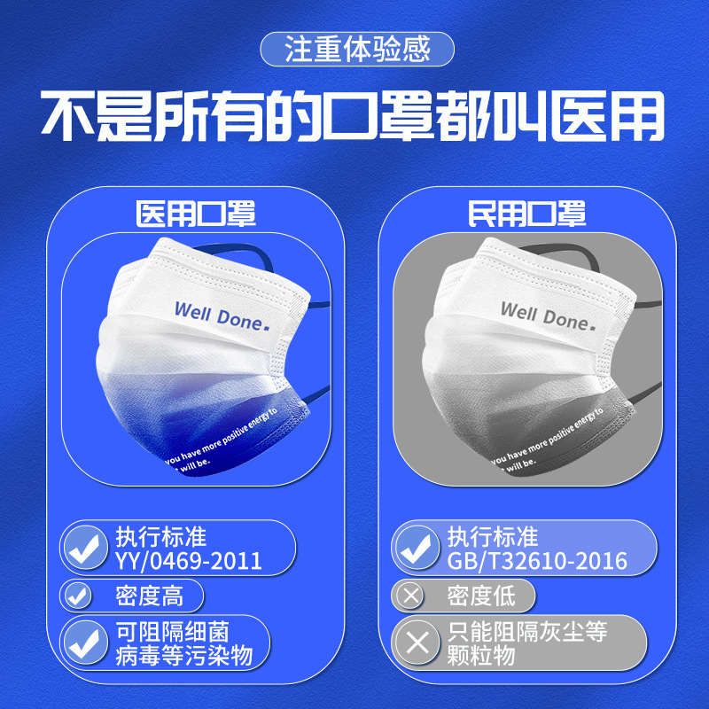 克莱因蓝一次性口罩过滤医用级外科防护防尘独立成人口罩 厂家批发