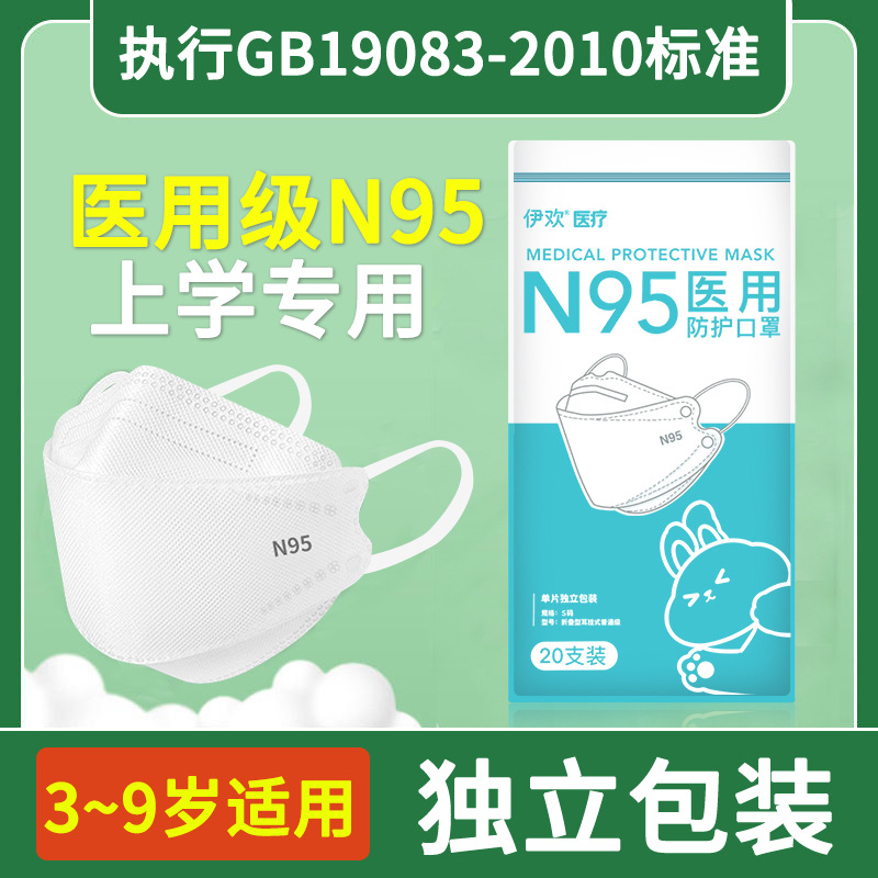 儿童型医用级一次性n95口罩卡通立体透气4到12岁学生冬专用独立装