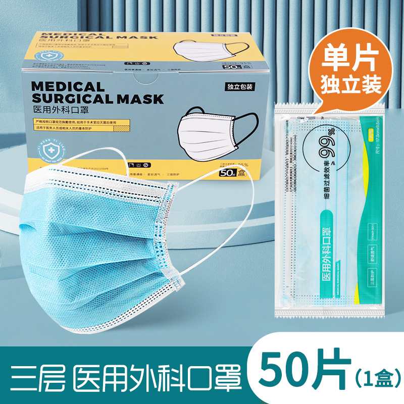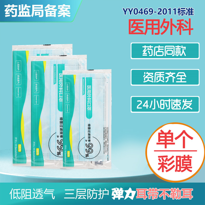 批发一次性三层防护医用外科口罩独立包装成人药店医用级 口罩现货