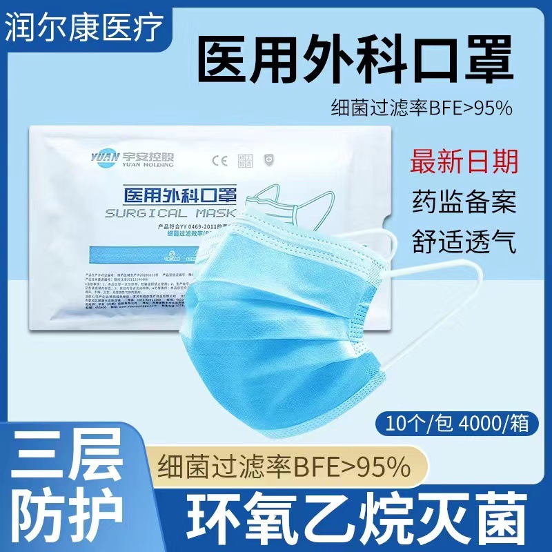 宇安控股一次性医用级医用外科口罩三层防护内含熔喷布10支装批发