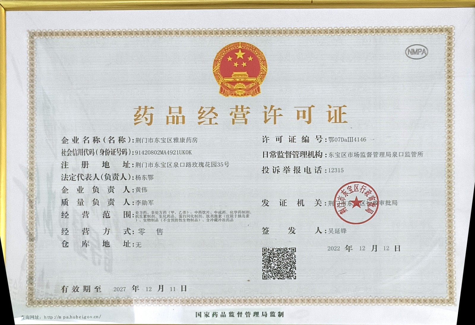 药品经营许可证