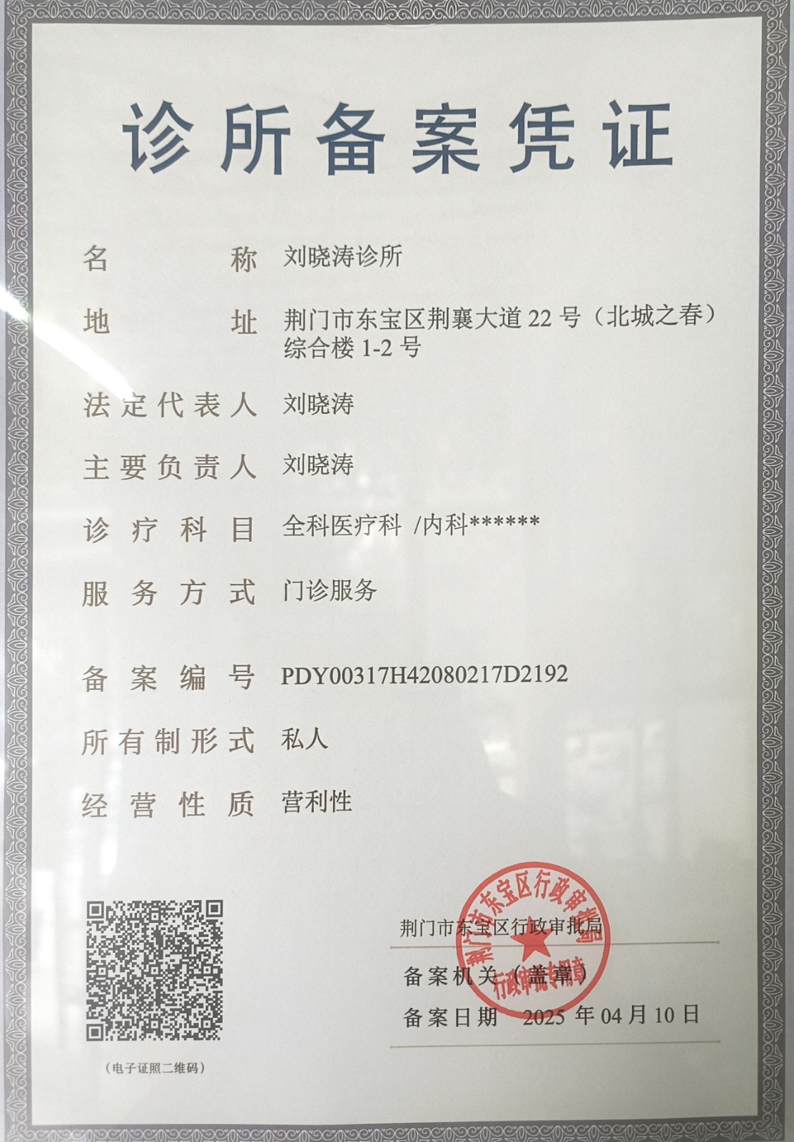 诊所备案凭证