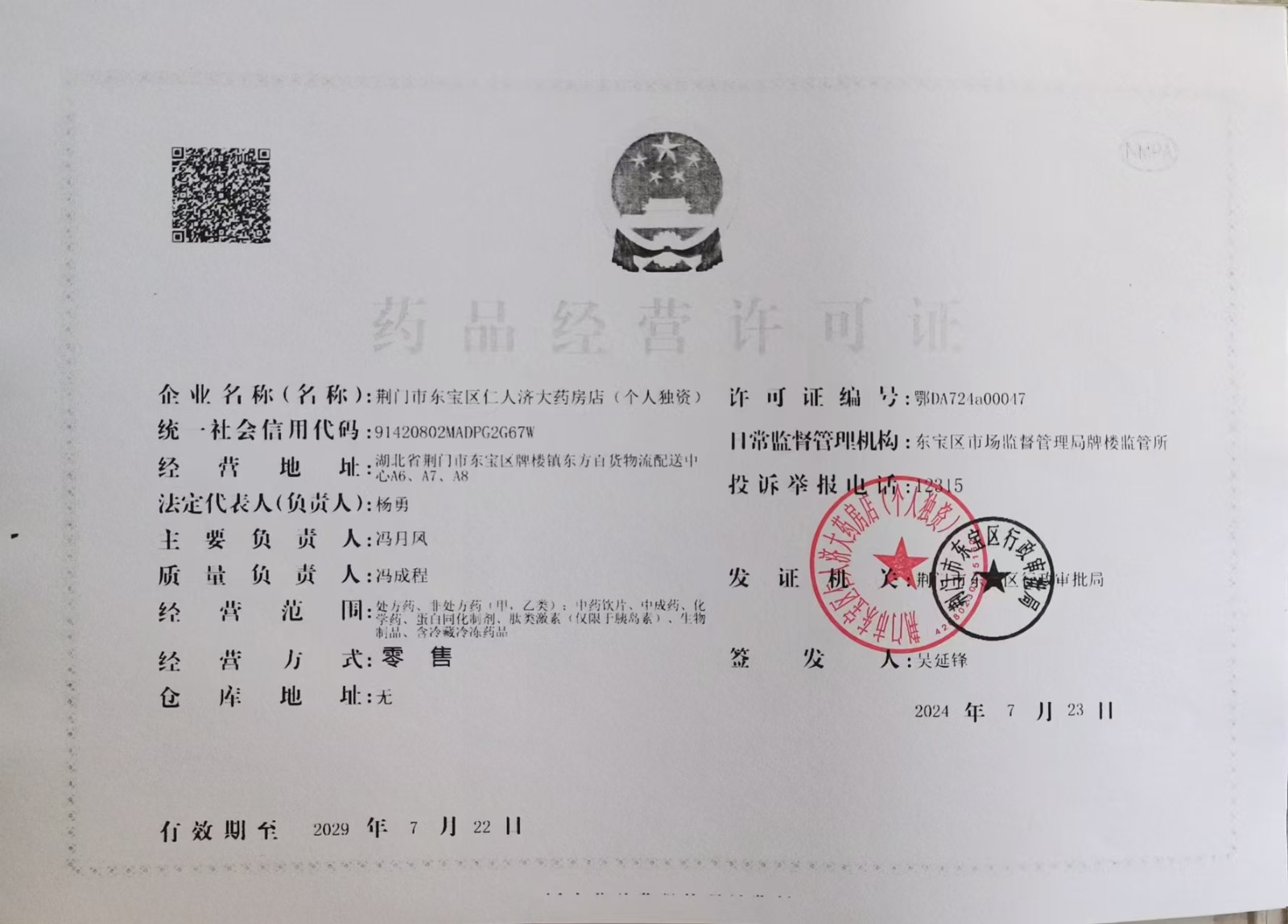 药品经营许可证