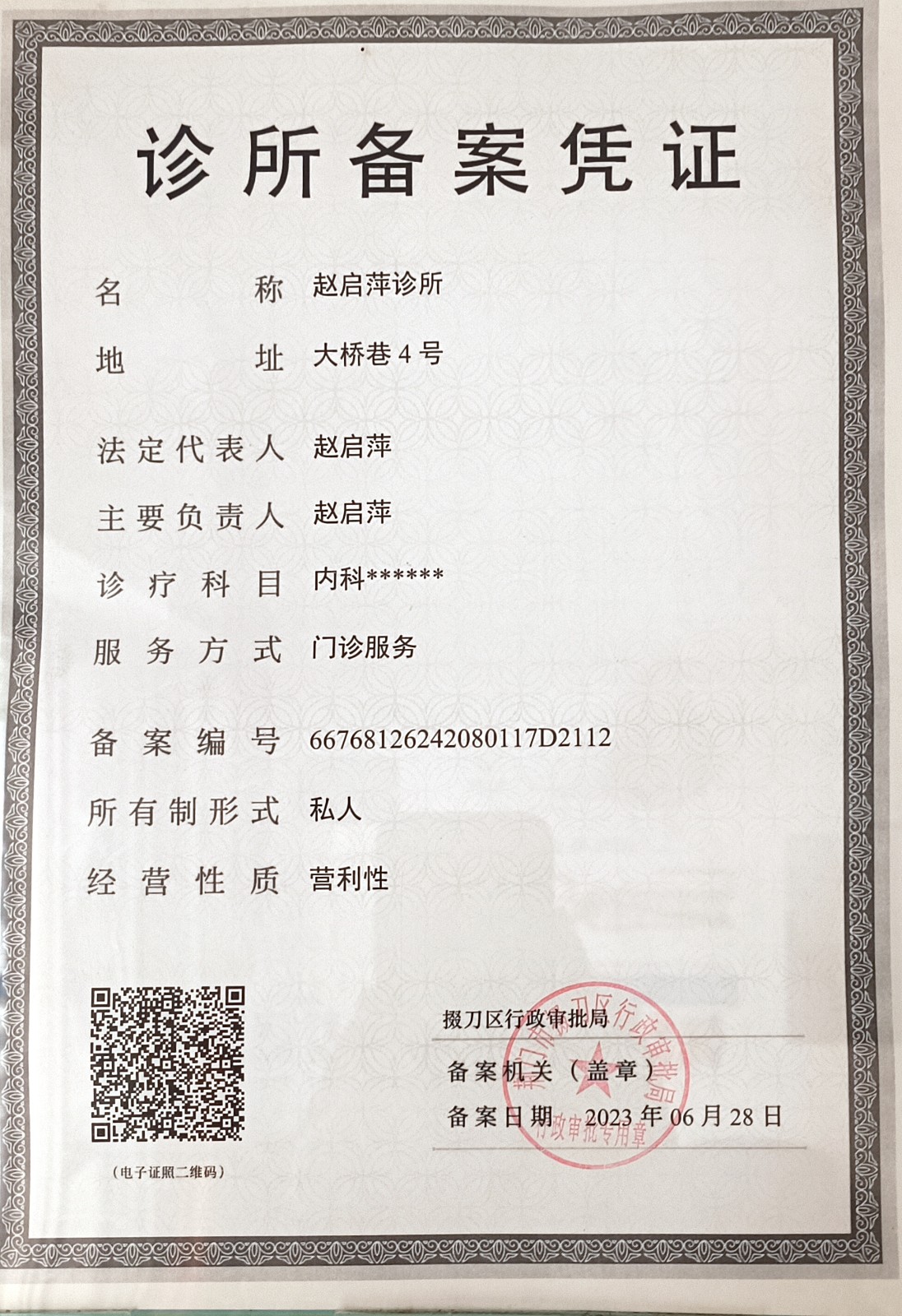 诊所备案凭证