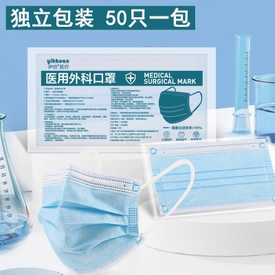 50只医用外科口罩独立包装一次性三层防护医疗医用级批发透气夏季信息二维码