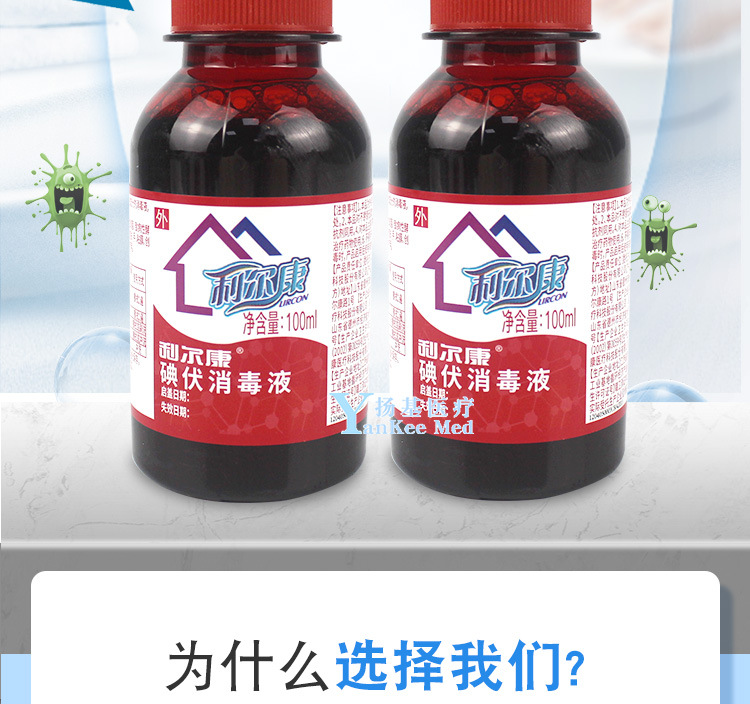 碘伏消毒液 利尔康100ml皮肤擦伤口小碘伏消毒液 居家碘伏消毒水