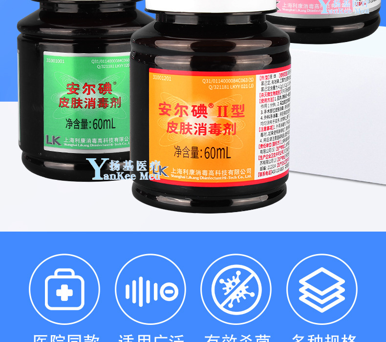 上海利康安尔碘1型2型3皮肤消毒剂60ml黏膜创面消毒不含乙醇宝宝