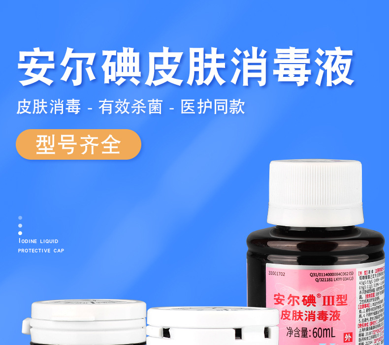上海利康安尔碘1型2型3皮肤消毒剂60ml黏膜创面消毒不含乙醇宝宝