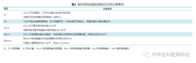 表1 临床常用血脂检测项目及其注意事项