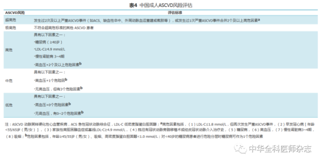 表4 中国成人ASCVD风险评估