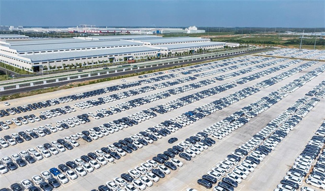△2024年9月,安徽合肥,整齐停放的新能源汽车正在等待装车销往国内外市场。