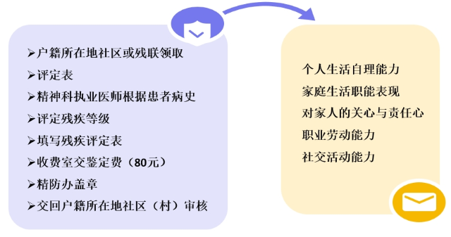 2.护理补贴:残疾等级为一级、二级精神残疾人,100元/月。