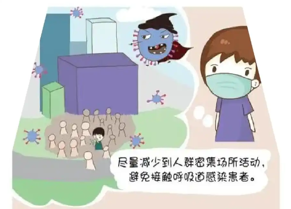 尽量少到人群拥挤的场所,尽可能避免与出现咳嗽、发热等呼吸道症状的人密切接触。