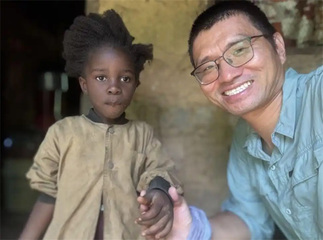 2024年12月8日,张军桥医生在坦桑尼亚奔巴岛参加义诊活动时与当地儿童合影。(来源:新华社)
