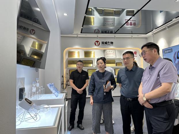 7月11日,陆叶青带队前往南京双威生物医学科技有限公司实地走访。作为国家专精特新“小巨人”企业,双威生物深耕医疗器械领域20余年,以安全输血、伤口治疗为主业,拥有80余项专利及11张二类、三类医疗器械注册证,其白细胞过滤器产品获 MDR CE认证,已成功打入欧洲市场,在国际化布局上成效显著。