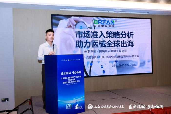 国瑞中安集团董事长林海涛聚焦“全球市场准入策略”,结合成功推动多家企业产品进入欧美市场的案例,解析了MDR、FDA等国际认证的关键节点与合规要点。