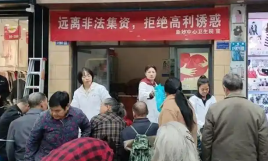 11月24日,重庆市涪陵区新妙中心卫生院以“远离非法集资,拒绝高利诱惑”为主题,在人员密集场所开展“摆摊式”宣传活动,将金融安全知识送到群众身边,充分发挥基层医疗卫生机构“最后一公里”宣传触角作用。