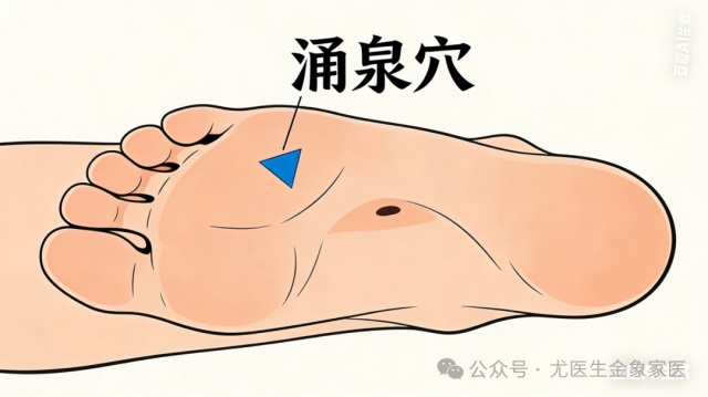 涌泉穴:脚底前部凹陷处,睡前按摩可引火归元,改善睡眠 。
